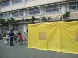 続いて防火設備会社の方に、避難袋の使い方講習会をしていただきました。 3階から1...