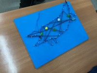 今日は、前回打ち込んだ釘に毛糸を巻きつけて飾り付けをしました。 毛糸だけでなく...