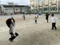 短縄跳びカードを使って新しい技にチャレンジしています。休み時間、短縄跳びに取り組...