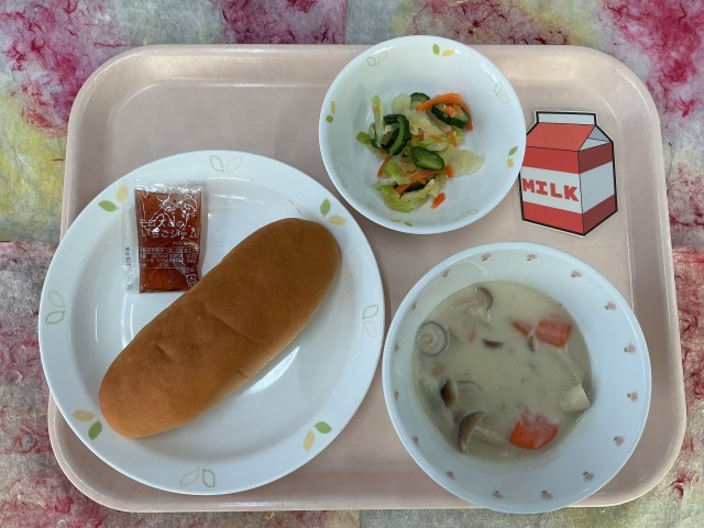 ⭐︎献立⭐︎・コッペパン(いちごジャム)・さつま芋シチュー・フレンチサラダ全国学...