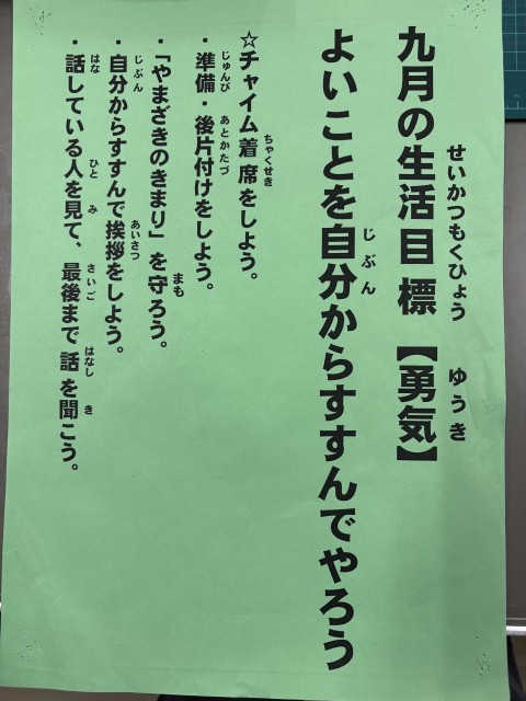 2学期は、各学年の遠足や社会科見学、宿泊行事等、盛りだくさんの学習活動があります。気持ちよく過ごせるように、見守っていきたいと思います。