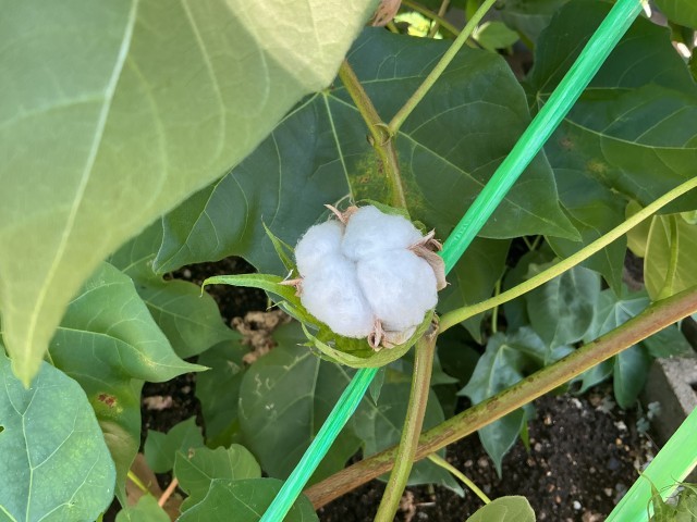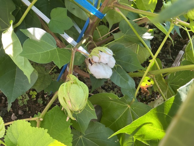 以前、観察した綿の実がはじけて、ふわふわの綿が出てきました!