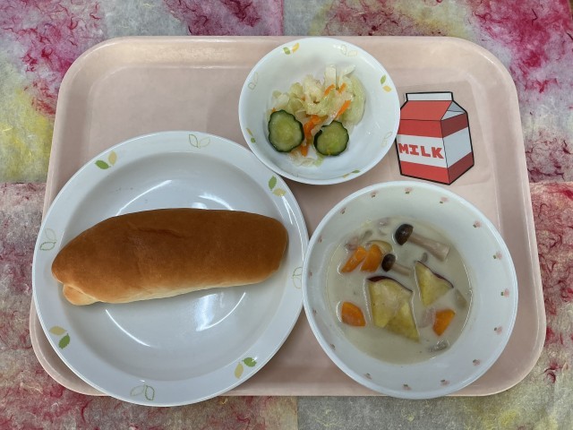 今日は秋を代表する食べもの「さつま芋」が登場しました。今日のシチューに「さつま芋」が入っていることに気付いた1年生が「さつま芋だ」と喜んでくれていました。秋はまだ先のような暑さですが水分補給をしっかりして過ごしましょう。
