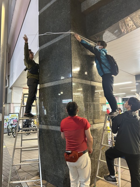 校内の装飾、商店街の横断幕、梅ヶ丘駅の横断幕の設置