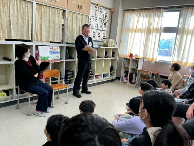 子どもたちがいつも楽しみにしているPTAの読み聞かせの時間に、今日は、校長先生が来てくださいました。