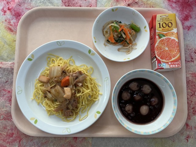 今年一年元気に過ごせるよう鏡開きのお餅にちなんで、みんなで「白玉しるこ」を食べます。