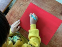 毛糸だけでなく、ビーズを通したり木片をボンドで貼ったりと、指先を使う細やかな作業が続きましたが、子どもたちは、非常に集中して取り組んでいました。