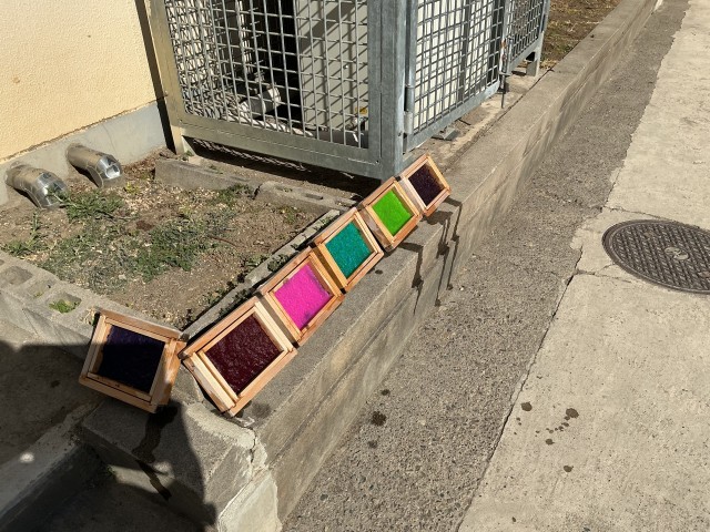 原料を漉くと、色鮮やかで綺麗な紙の形に。乾いたらどのような色、手触りになるのでしょう。完成がとても楽しみですね。