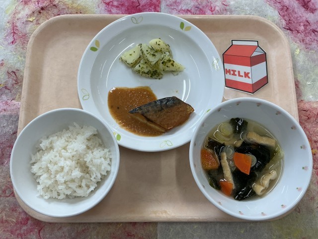 今日もお魚が主菜の献立です。程よくピリ辛のソースがさばにかかっていて、ごはんが進む味付けです。仲よし学級の子どもたちが「青のりポテト」を楽しみにしてくれていると担任の先生からお聞きしました。いつも給食を楽しみにしてくれてありがとうございます。今日も給食室では美味しく楽しく安全に食べてもらえるよう頑張って調理しました。残さず食べてくれたら嬉しいです。