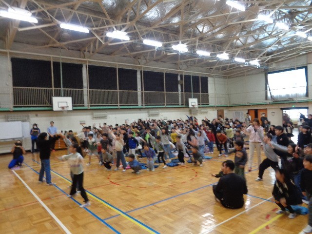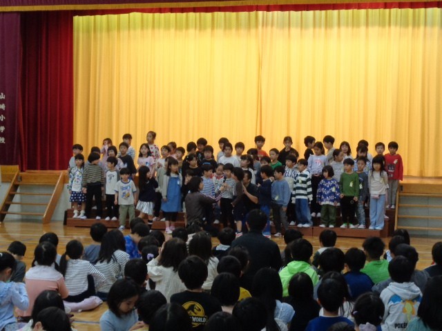 遊んだ後に1年生からあいさつがあり、最後はみんなで校歌を歌いました。