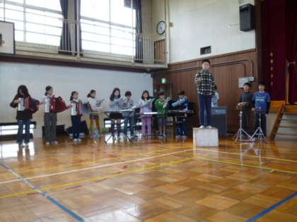 今日の音楽集会では、「6年生を送る会」で全員で歌う「グッバイ!また明日ね!」の練習をしました。伴奏は音楽委員会のみなさんです。