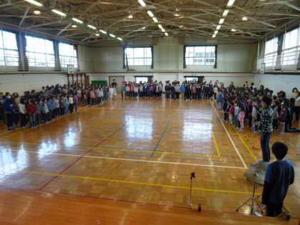 音楽の時間や学級で練習し、全校で合わせるのは今日が初めてでした。3月5日の「6年生を送る会」が思い出に残る会となるよう、全校で準備を進めています。