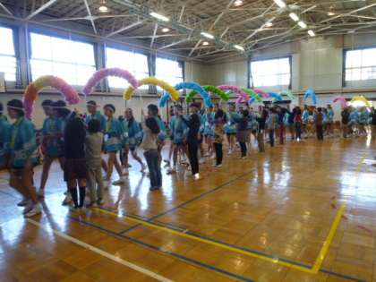 会全体を進行する代表委員のはじめの言葉に続き、校長の話、各学年・仲よし学級の出し物と続きました。一生懸命に言葉を述べたり演奏したり踊ったりする下級生を、6年生は温かい視線で見守っていました。
