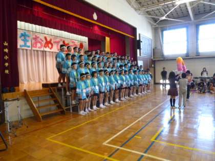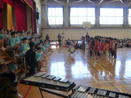 もうすぐ卒業するお世話になった6年に、下級生から感謝の気持ちを伝える会「6年生を送る会」が、1・2校時に体育館で開かれました。