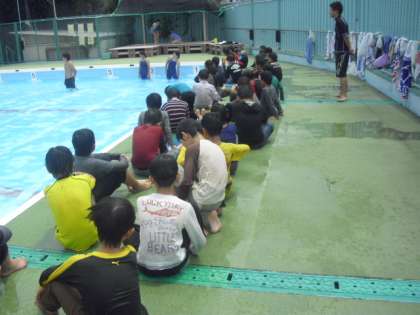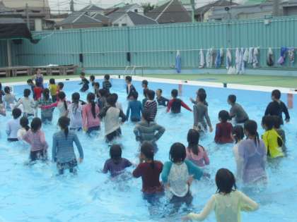 夏休みを前に、4年生が着衣泳を行いました。夏休みは、子どもたちにとって楽しい時ですが、水の事故等にも十分注意が必要な時です。今年から、4年生も着衣泳を行うこととしました。(6年生は、9月に実施します)講師の方を招いて、服を着たままで水の中で動いてみたり、うまく浮くための練習をしたりしました。事故にあわないことが何より大切ですが、もしものときに自分で身を守る方法を体験しながら学ぶよい機会となりました。