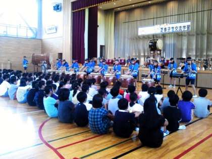 舟形小学校の全員の子供たちに迎えていただき、お迎え集会に臨みました。舟形小6年生の歓迎の太鼓に始まり、4年生が舟形の紹介をしてくれたり交流のよいスタートができました。3日間お世話になります。