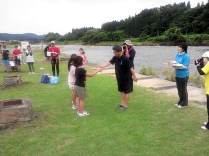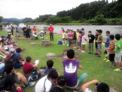 楽しかった川遊びを終え、ウォークラリーの表彰式を行いました。どのグループも良く頑張りました。その後、何人かの友達が感想を発表してくれました。今日の活動で仲良しになった様子が伝わってきました。子供たちは、これからホームステイの二日目を迎えます。