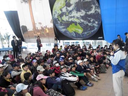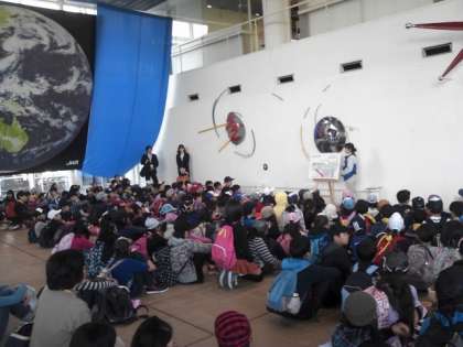 環境エネルギー館に到着。ガイダンスを受けてから見学です。