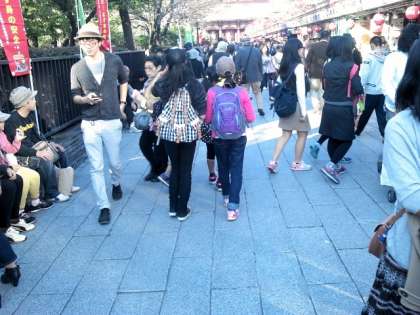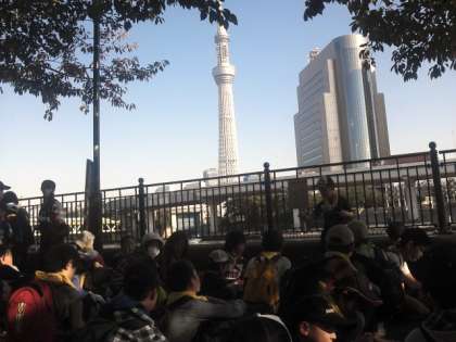 スカイツリーをバックに記念撮影。その後は仲見世で買い物です。