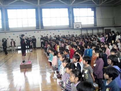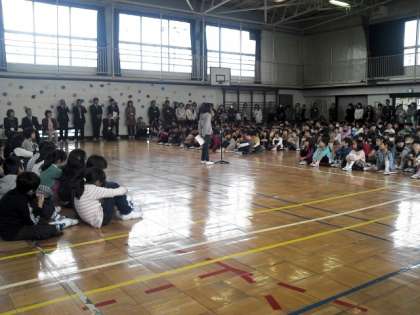 体育館で歓送式を行いました。あっという間の3日間、沢山の思い出ができました。