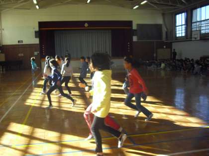 山スポタイム(体育朝会)を1・2年生(校庭で置き換え走)、4・5年生(体育館でPターン走)、3・6年生(屋上でダンス)に分かれて行いました。だんだん寒くなってきています。できるだけ外に出て自分から体を動かすようにしていきたいと思います。