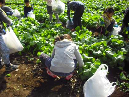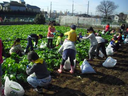 2年生が、校外学習で小松菜取りに出かけました。今回、収穫した小松菜は…、なんと!幻の「城南小松菜」で、スーパーマーケットでは、買うことができない品種だそうです。袋いっぱいに収穫することができました。学校で観察をしてから持ちかえりました。お家でおいしく食べてくれるでしょう。