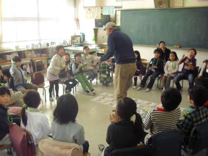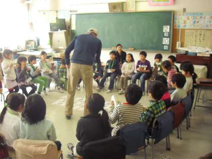 5・6年生の外国語活動は、年間35回実施していますが、それ以外の1年生から4年生も外国人のALT(外国語指導助手)による英語の授業を行っています。学期に1度、年間3回程度の活動ですが、いつもとは違った雰囲気の中、英語に親しむ機会となっています。