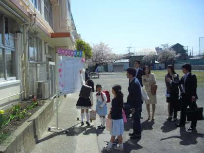 始業式に引き続きの入学式。48名の新一年生が保護者の方と一緒に登校してきました。