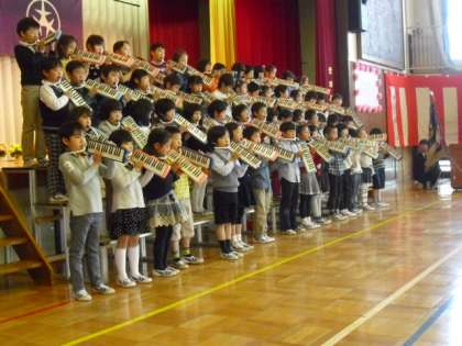どの顔も一年生になる喜びであふれていました。入学式では、少し緊張気味でしたが、校長先生の「おはようございます」に元気な声で「おはようございます」と答えたり、話を最後までしっかり聞いたりとがんばって式に臨みました。入学式に参列して6年生も、その1年生の姿を温かく見守っていました。式の後には、2年生が歓迎の言葉と歌を元気に披露してくれました。