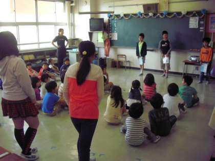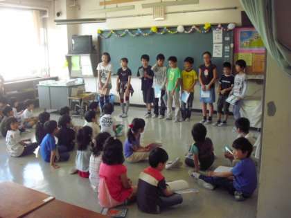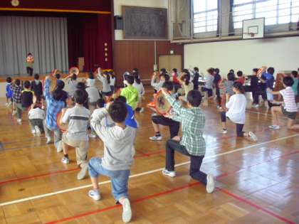 5月31日の運動会に向けて、朝の時間に花笠音頭の練習がはじまりました。1年生から4年生の各学級には、5年生が分担して踊りを教えに行きました。1年生も、お手本の5年生を見ながら頑張って練習していました。また、6年生は、昨年度の夏季舟形交流で舟形症の友達から教わった踊りを思い出しながら練習を始めました。練習をしっかりして運動会では全校で心を合わせて踊りたいと思います。