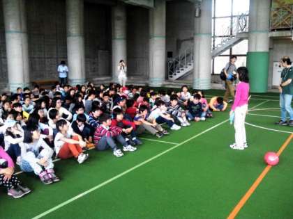 白熱のドッジボールが終わりました。少しの時間でしたが仲良くなれたようです。