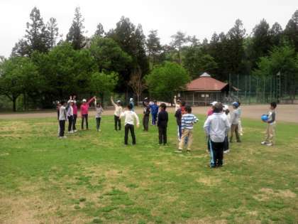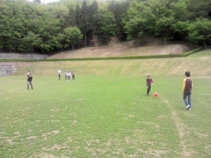 昼食を終え、てんぐ山公園に移動しました。広い芝生のグランドで元気に鬼ごっこやボール遊びをしています。