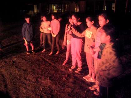 夕食を食べている時、雨が降り心配されたキャンプファイヤーでしたが、雨もやみ係の子どもたちを中心に楽しいひとときを過ごしました。最後には、星空も見え、川場最後の夜は思い出深いものになりました。このあと、入浴し就寝です。ゆっくり休んで最終日を迎えて欲しいと思います。