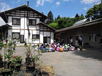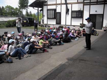 宮田果樹園で川場村のお話をうかがいました。りんごの栽培の仕方についても説明をしていただきました。最後に美味しいりんごジュースをいただきました。