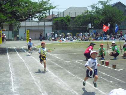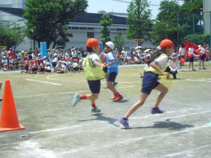 1・2・3年生の選手による「紅白リレー」。この日までたくさん練習をしてきました。どの子も最後まで力一杯走りました。