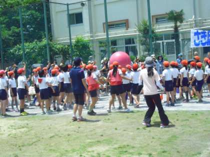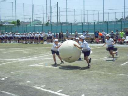 全校で力を合わせての「大玉おくり」。
