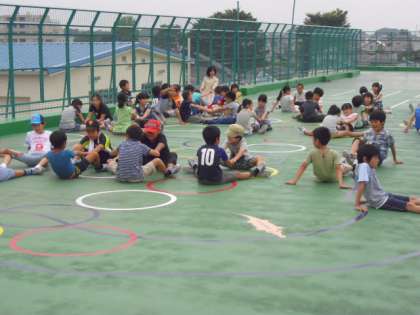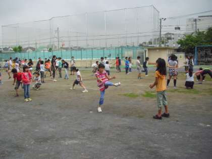 今日の山スポは、低学年が体育館で「投げる運動」、中学年は屋上で「ゆったりリラクゼーション」、高学年は校庭で「ゴムとびくぐり」に挑戦しました。曇り空でしたが、どの学年も楽しく身体を動かして取り組んでいました。