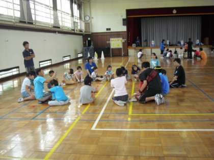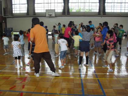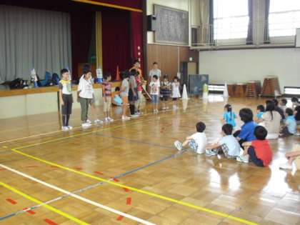 仲よし学級が、弦巻小6組、旭小ひまらや学級、三宿小わかば学級の友達と体育館で交流会を行いました。4〜6年生は河口湖移動教室で一緒に子ども会をしてから一週間ぶりの再会です。1・2年生は、河口湖移動教室に参加していませんが、同じプログラムをお兄さん、お姉さんたちと楽しみました。みんな元気いっぱいに踊ったり、歌ったりしながら仲良く活動しました。また、秋の交流会で会いましょう。