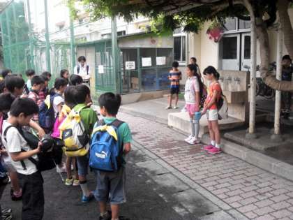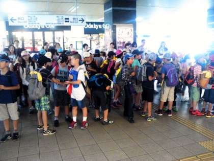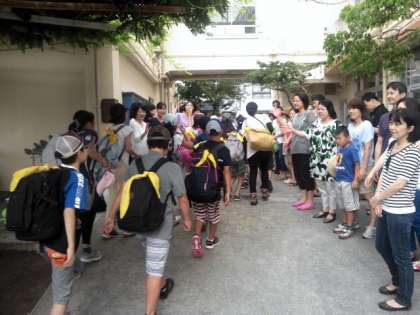 いよいよ舟形交流が始まります。たくさんの保護者の方の見送りの中、出発式を行いました。3日間元気に、楽しく過ごしてきます。