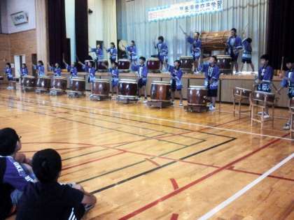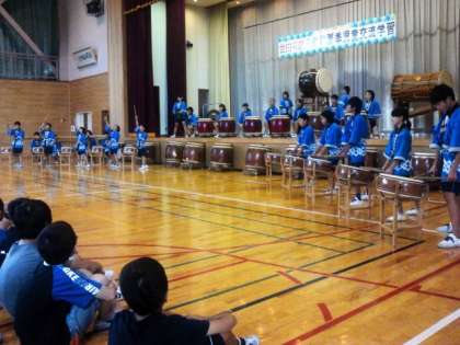 昨年、山崎小にきてくれた6年生による歓迎の太鼓演奏です。とても力強い演奏です。