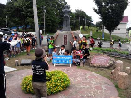みんなで協力しながらウォークラリーを続けています。縄文の女神像の前で写真撮影。アイスキャンディを食べながら休憩です。