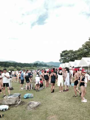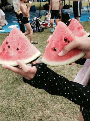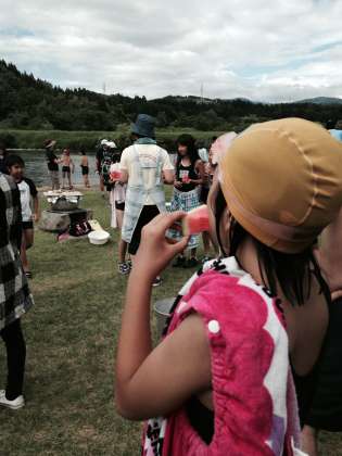 川遊びの途中には、スイカをいただきました。無事に川遊びは終了です。