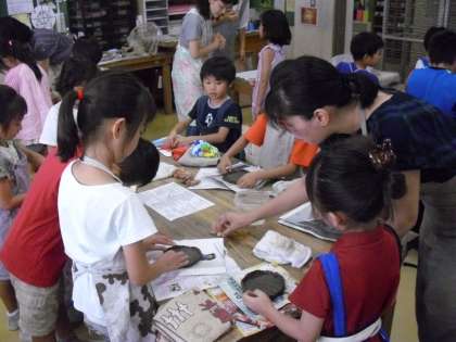 今年もPTA陶芸同好会の方が、子どもたちのために陶芸教室を開いてくれました。図工室で、低学年の部、高学年の部、中学年の部の3回に分けて指導してくれました。全部で150名以上の子どもたちがお皿作りに挑戦しました。焼きあがりが楽しみです。