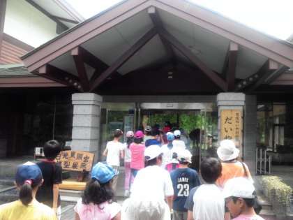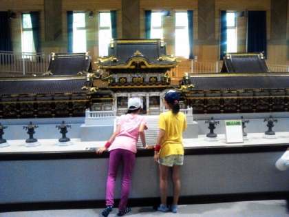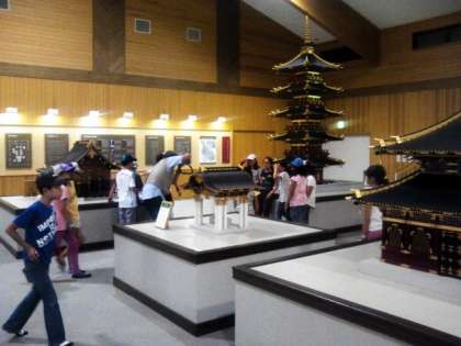 だいや体験館の見学をしています。実際に見ることのできない陽明門の模型などを見ています。
