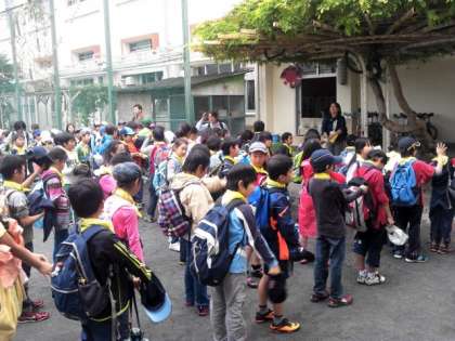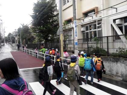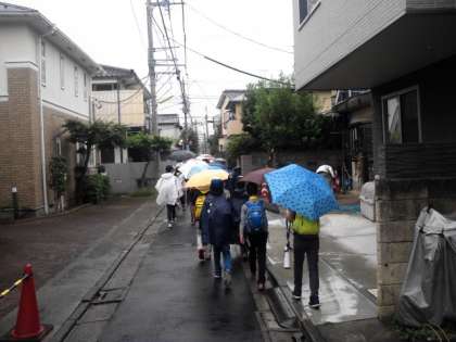 梅ヶ丘駅からの帰りに少し雨に降られましたが無事学校に戻りました。世界にひとつだけの藍染のバンダナ、家で数回手洗いして日かげ干ししていただけると色落ちしにくくなります。