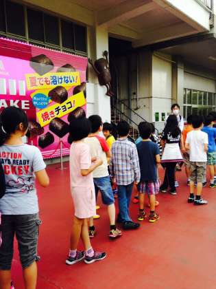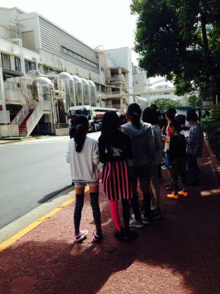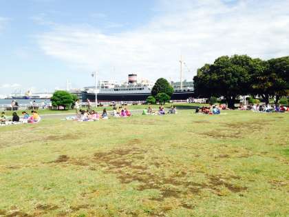 森永製菓工場の見学を終え、山下公園で昼食を食べています。