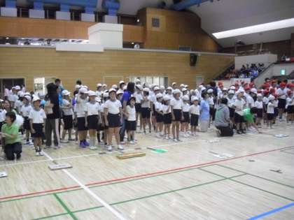 本日、世田谷区立総合運動場の体育館で特別支援学級連合運動会が開催されました。お家の方と一緒に体育館に集合し、15校のみんなで一緒に運動会を楽しみました。