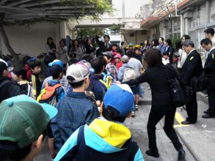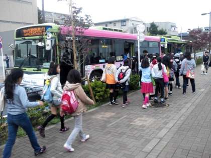 舟形交流も3日めの朝を迎えました。これから代沢小にバスで向かいます。