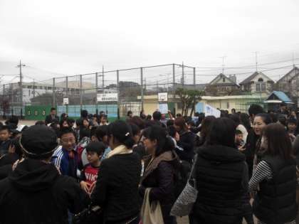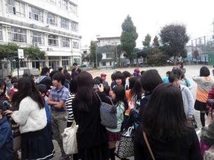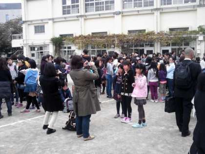 お別れタイムです。班ごとにお別れをしています。お世話になった保護者のみなさんも一緒にお別れです。