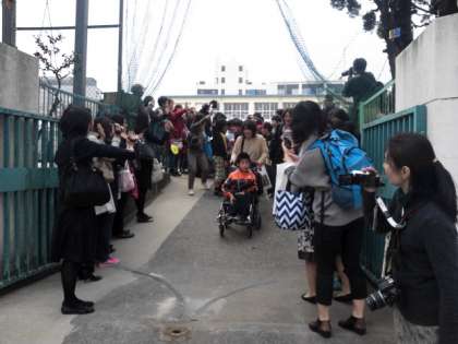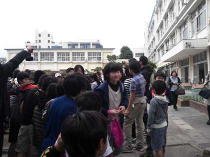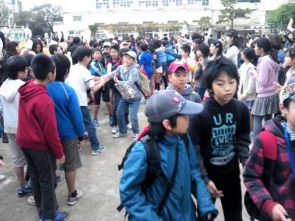 舟形小の子どもたちが5年生の見送りの中、代沢小を出発しました。